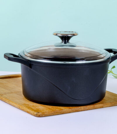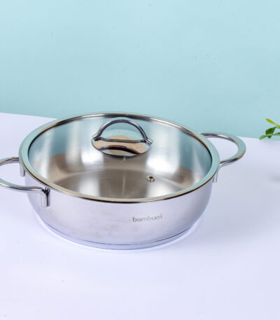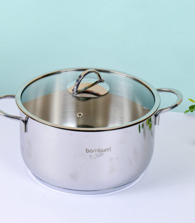 قدر ستيل بغطاء زجاج 20 سم