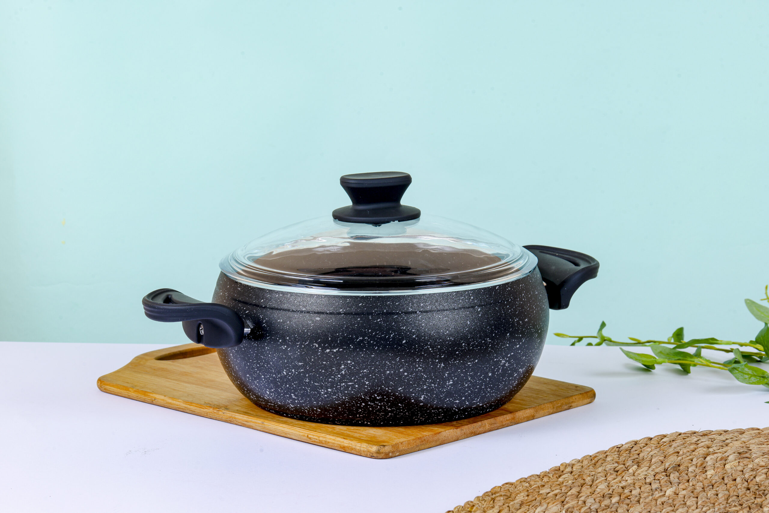 Enjoy healthy and delicious cooking with this carefully crafted high-quality granite pot. Its eco-friendly handles provide comfort and safety, while the thick base ensures even heat distribution for perfect cooking results. Ideal for all your favorite recipes and easy to clean, bringing a luxurious and long-lasting touch to your kitchen.