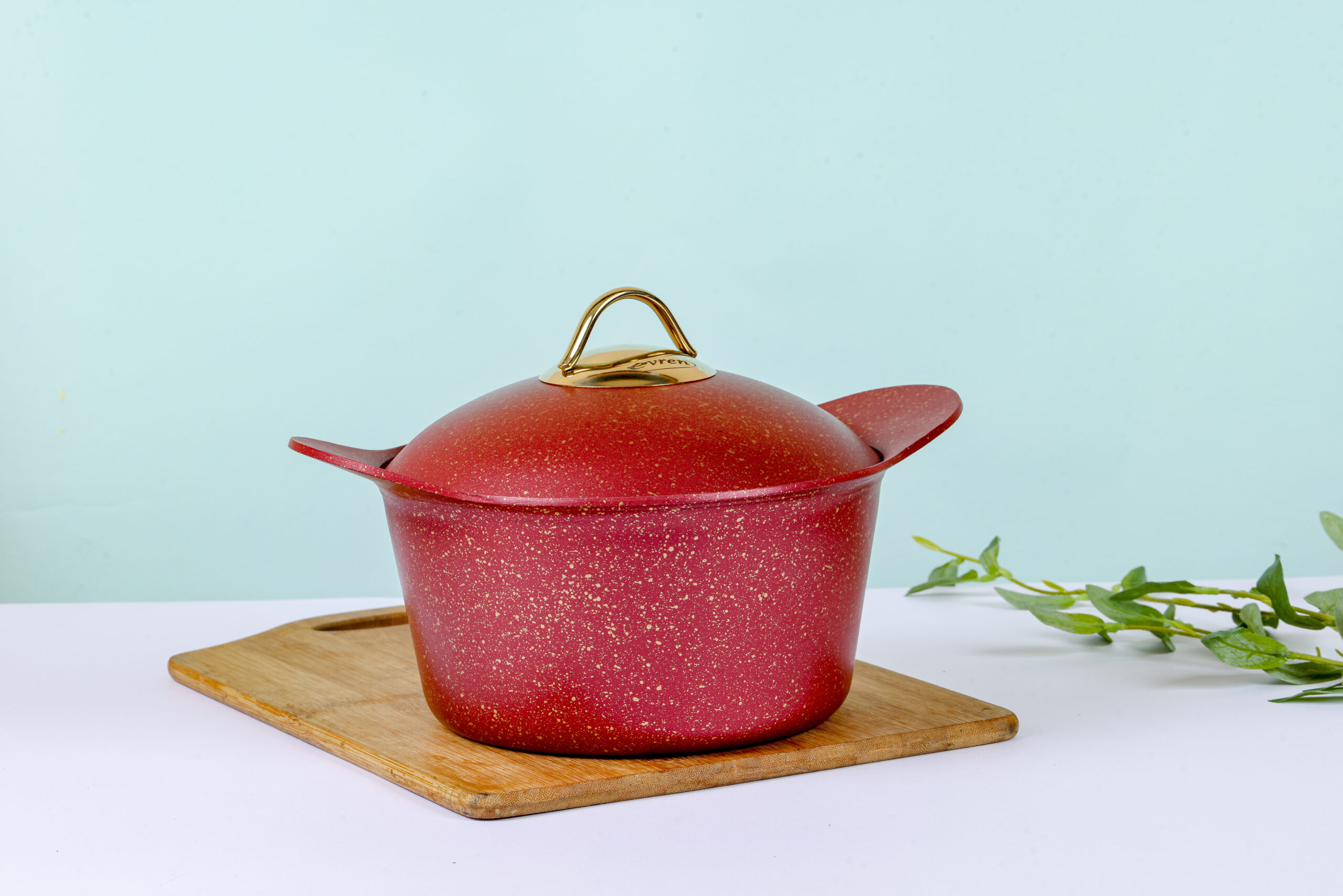 يأتي مع مقابض جرانيت متينة ومسكة ستيل ذهبية أنيقة تضيف لمسة فاخرة، مع غطاء جرانيت عملي يحافظ على الحرارة والنكهة أثناء الطهي.